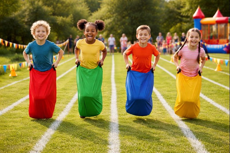 The package includes 24 pack sack race bags in 4 different color yellow, green, blue red. Each made of polyester. Each of the sack measures about 23.6 x 27.7 inches/ 60 x 100 cm, large size enough for teenage and adult games, it is colorful, makes you more eye-catching in the game.